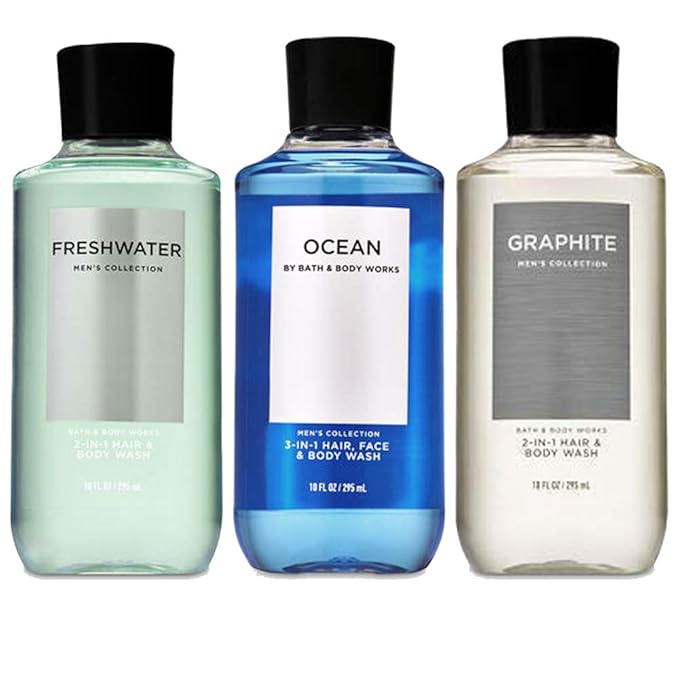 - Set contains 1 each 3-in-1 men's collection face and body wash: Freshwater, Ocean, and Graphite 10 Oz. body wash.