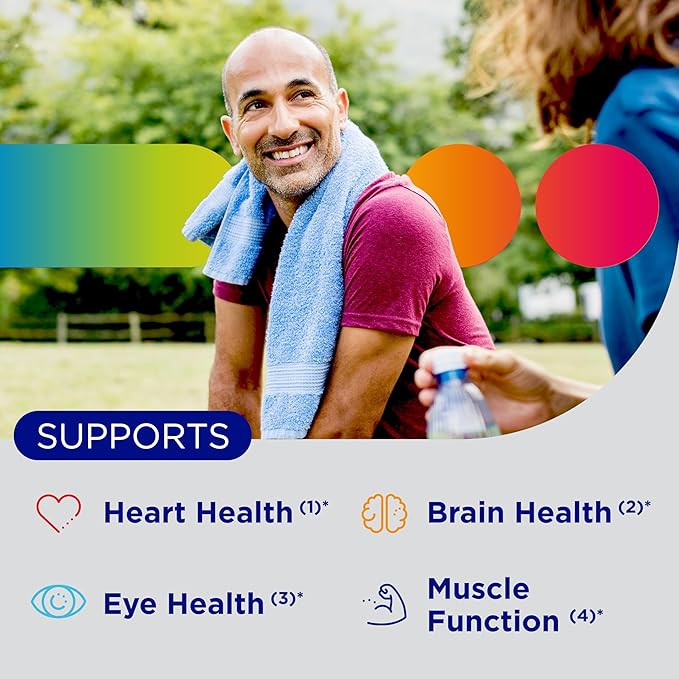 Benefits | Supports heart health*(1)(5), brain health*(2), eye health*(3) muscle function*(4) | Supports heart*(1)(5), brain*(2), eye health*(3), muscle strength*(4)* | Supports heart health*(1)(5), brain health*(2), eye health*(3) muscle function*(4) | Supports heart*(1)(4), brain*(2), bone health*(7) | "Supports a healthy body + heart, brain & eye health (1)(2)(3)*" |