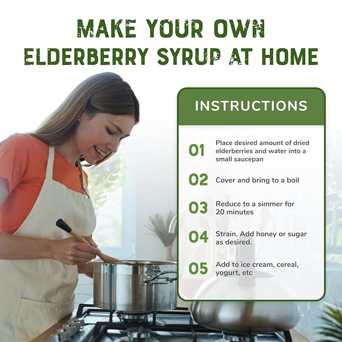 - ½ cup Nature’s Greatest Dried Elderberries