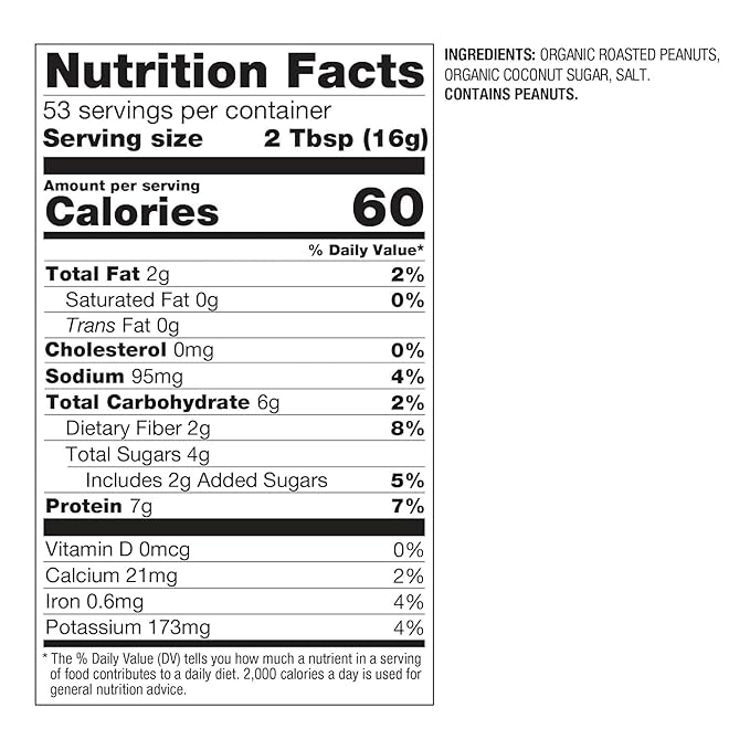 Ingredients | Organic Roasted Peanuts, Organic Coconut Sugar, Salt | Roasted Peanuts | Roasted Peanuts, Cane Sugar, Cocoa, Salt | Roasted Peanuts, Monk Fruit Blend (Erythritol, Monk Fruit), Salt | Gluten-Free Whole Grain Organic Rolled Oats, Organic Roasted Peanuts, Organic Cane Sugar, Organic Chia Seeds, Organic Milled Flax, Organic Hulled Hemp Hearts, Salt. |